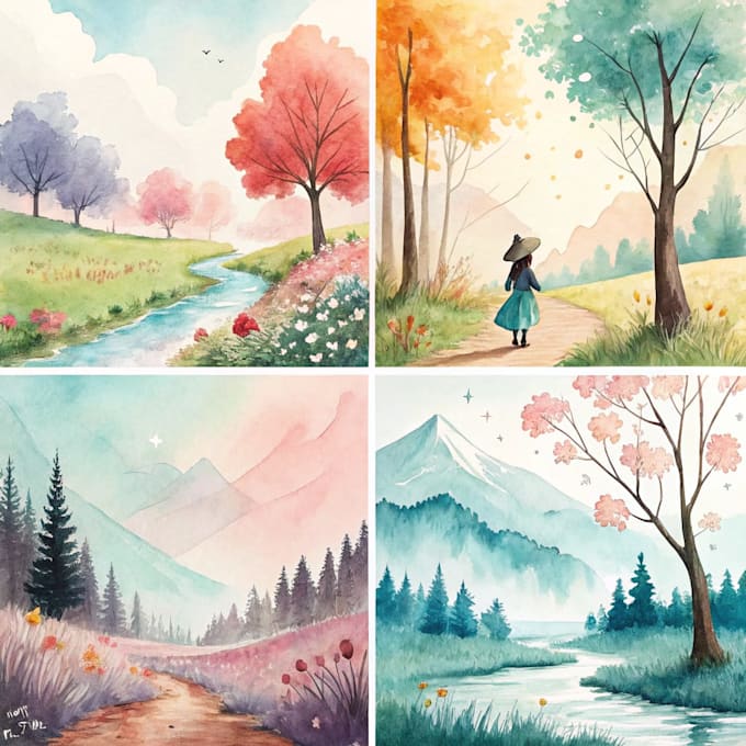 I will create digital watercolor illustrations and wall art